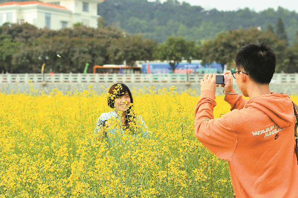 The vibrant yellow canola flower blooms in the first lunar month while the lotus blooms in the sixth lunar month. If you have the desire to indulge yourself in an ocean of canola flowers, you don’t need to travel all the way to Wuyuan in Jiangxi Province, you can just head to Dongguan Qiaotou Lotus Lake for all the canola flowers you can handle. Here you can throw yourself into the blooming landscape and dance around like a beautiful butterfly.