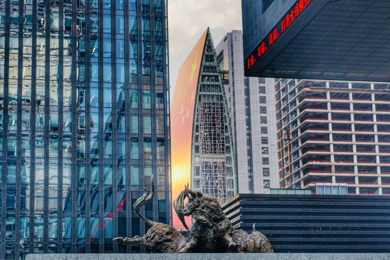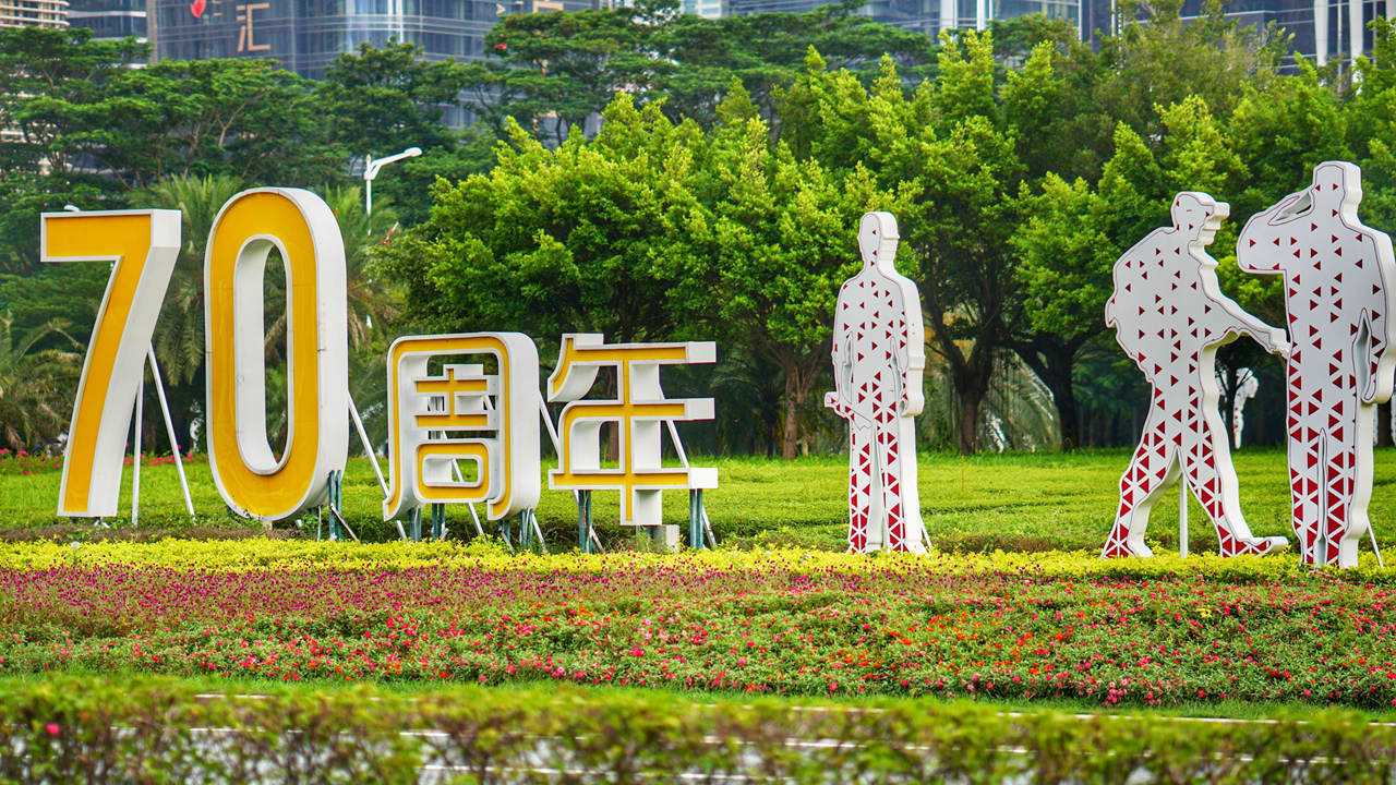 National flags and National Day art decorations are omnipresent across the city to mark the upcoming 70th anniversary of the founding of People's Republic of China.