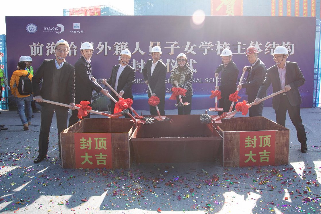 The construction of the main building of Harrow International School Shenzhen Qianhai was announced to have finished Saturday at the site of the project in Qianhai’s Qianwan Area.