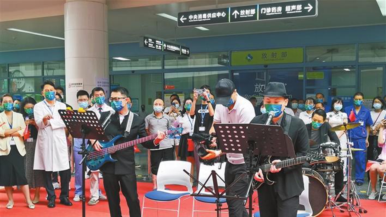 A special concert presented by Shenzhen and Hong Kong medical workers, local residents and a professional orchestra was staged at the atrium of the Outpatient and Medical Services Block in the University of Hong Kong-Shenzhen Hospital (HKU-SZH) on Thursday.