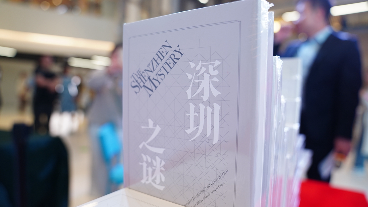 Copies of "The Shenzhen Mystery" on display during the book launch event.