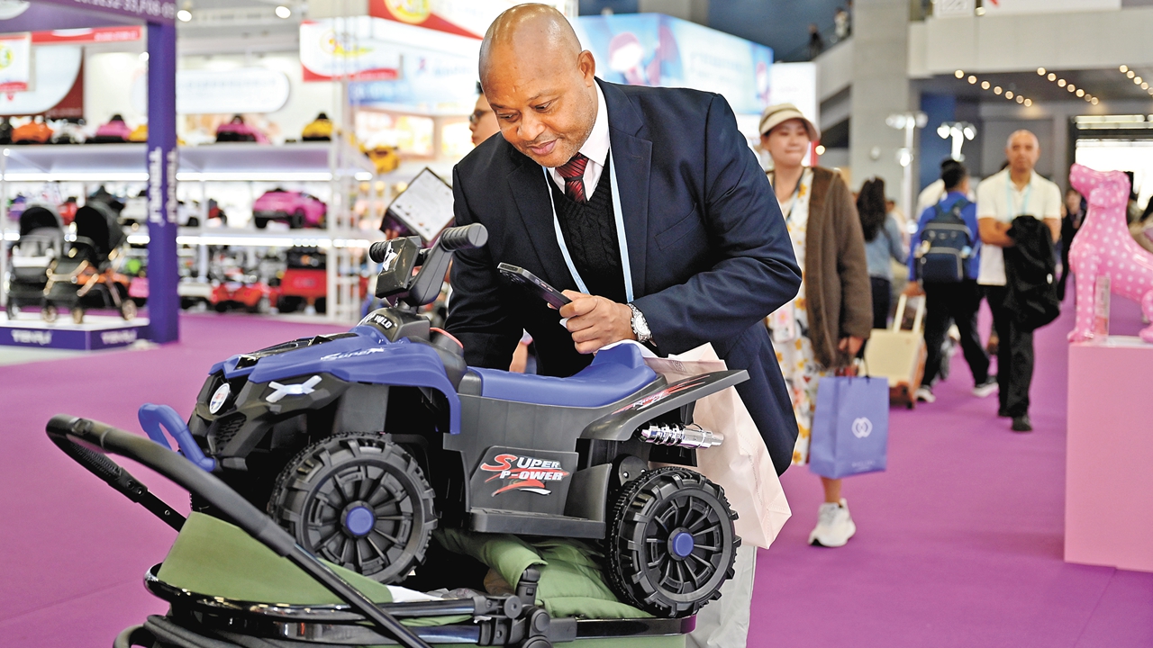 A visitor checks out a stroller and a toy car during the 138th China Import and Export Fair (Canton Fair). Xinhua