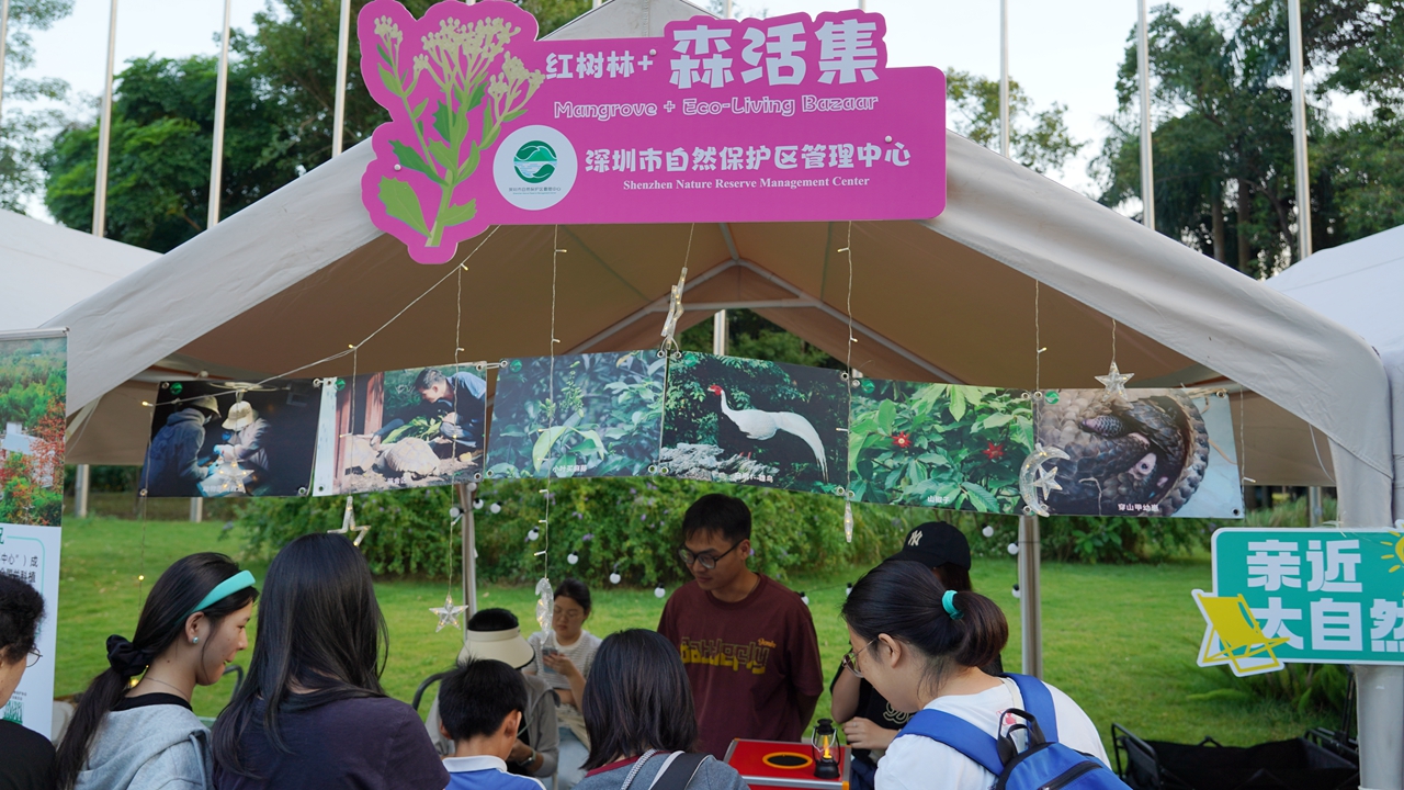 This two-day 2025 International Mangrove Night, concluding tonight, features five exhibition zones highlighting global mangrove conservation and cutting-edge ecological technologies. The eco-living bazaar gathers around 70 stalls from Hong Kong and Shenzhen, showcasing eco-friendly designs and handicrafts. During the event, visitors can also enjoy immersive experiences — stepping into a virtual mangrove scene using MR technology and even “diving” underwater. Today marks the first anniversary of the International Mangrove Center agreement. On Nov. 6 last year, representatives from 18 countries gathered in Shenzhen to sign the founding document.