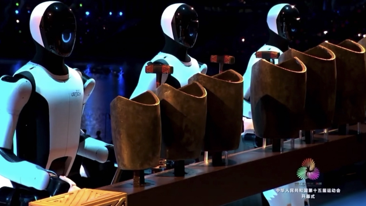 In a fusion of ancient heritage and cutting-edge technology, three humanoid robots played a set of 2,000-year-old bronze instruments Sunday night, marking a historic first for the opening ceremony of the 15th National Games.