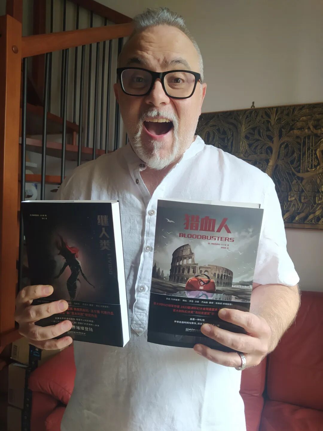 Francesco Verso poses for a photo with two sci-fi novels he has written in this file photo. Courtesy of the event organizer