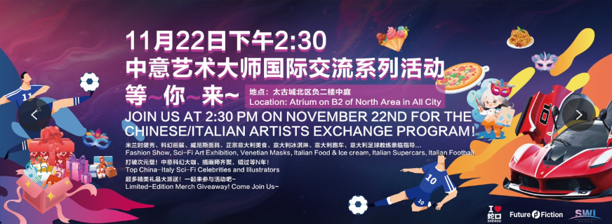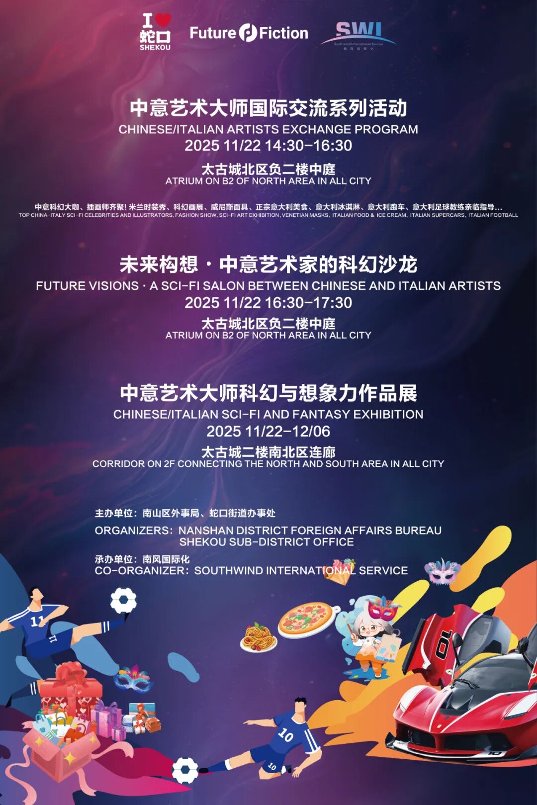 The Chinese/Italian Artists Exchange Program, organized jointly by the Nanshan District Foreign Affairs Bureau and the Shekou Subdistrict Office, will open at the Baoneng All City mall in Shekou on Nov. 22, with a theme centered on “Sci-Fi and Fantasy.”