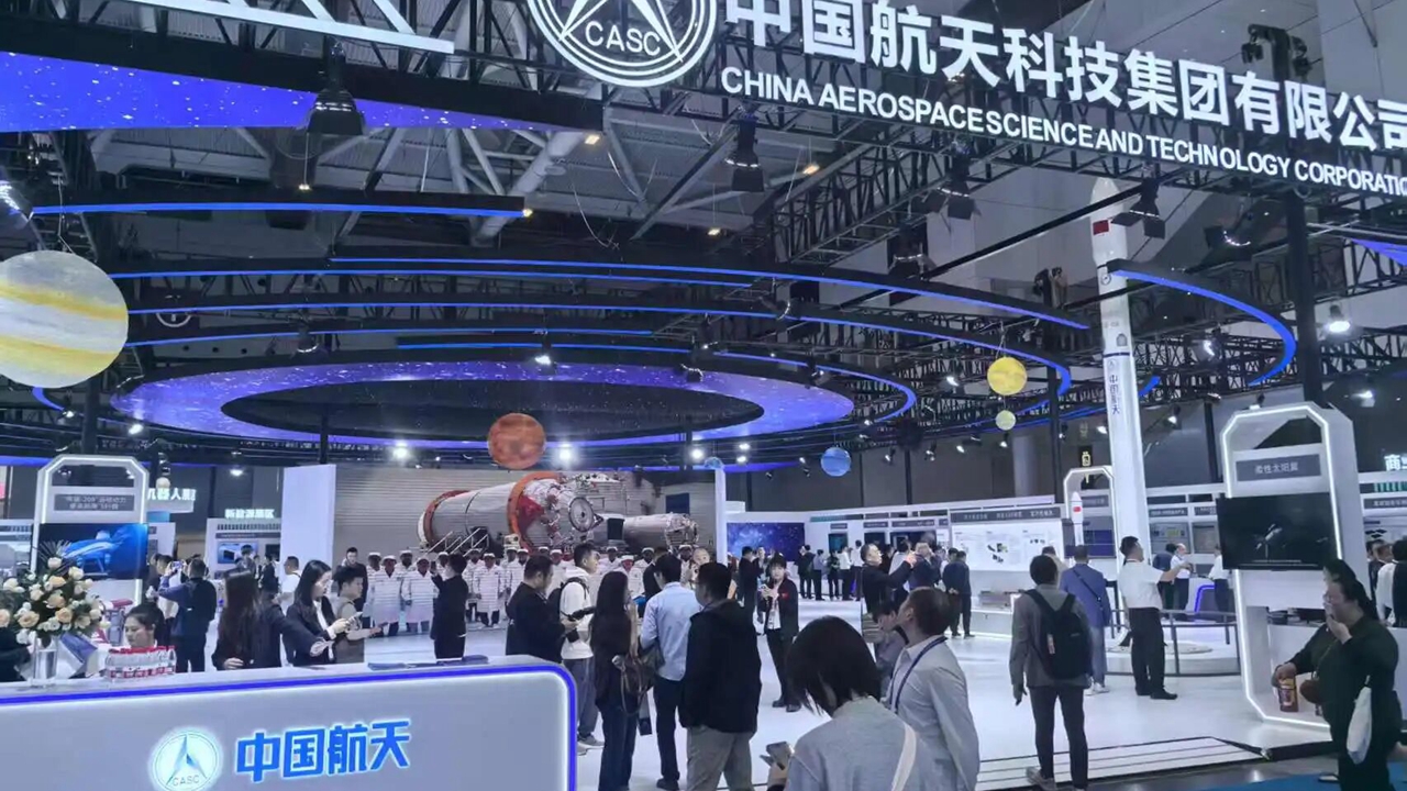 Crowds gather at the China Aerospace Science and Technology Corp. booth for an up-close look at the Long March rocket models during the fair.