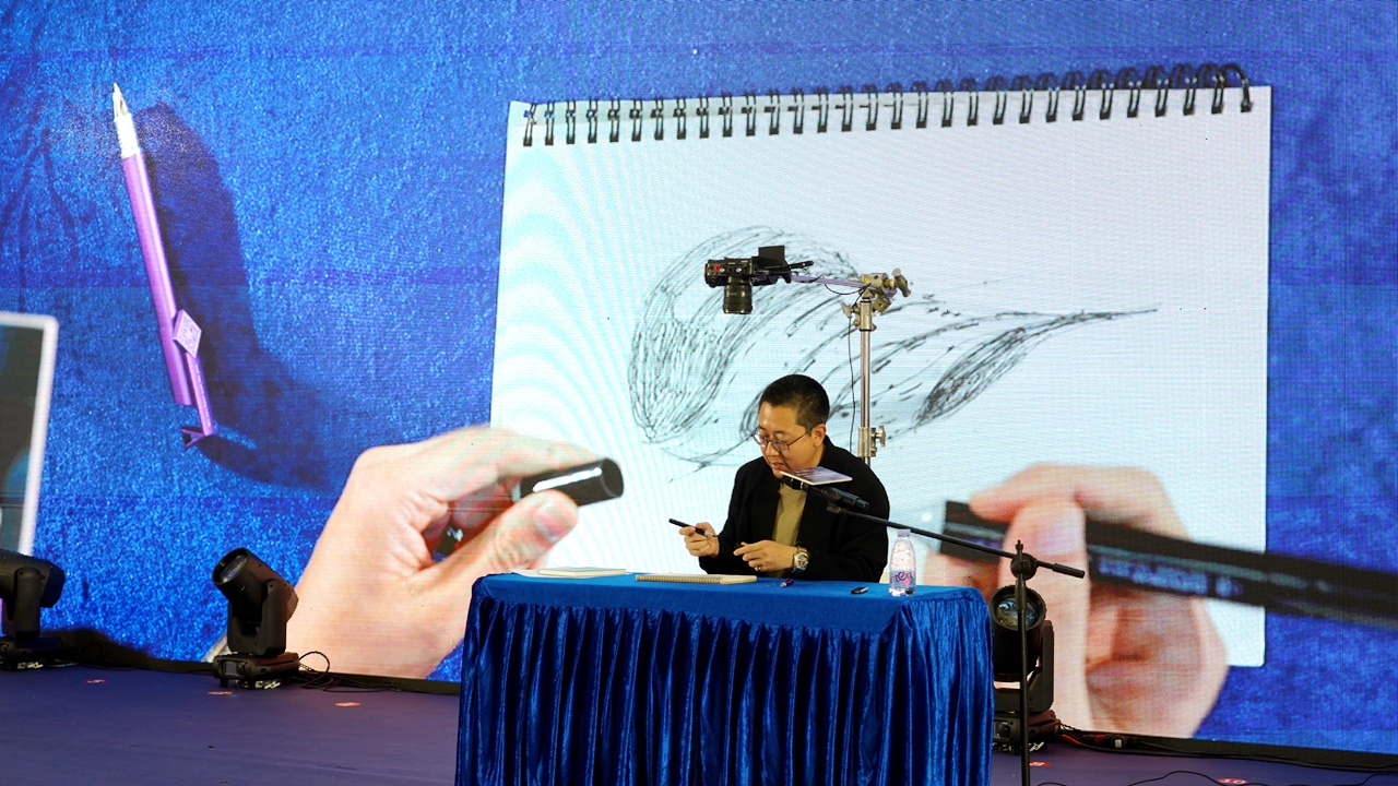 A live illustration session paired Italian artist Lorenzo Ala with Zhao Enzhe, the first Asian recipient of the Hugo Awards' Best Professional Artist. Ala produced a finely detailed drawing of a robot wearing hanfu, marrying Eastern clothing aesthetics with futuristic motifs. Zhao completed two spaceship sketches in just 10 minutes, his fluid lines and precise technique drawing rounds of applause from the crowd.