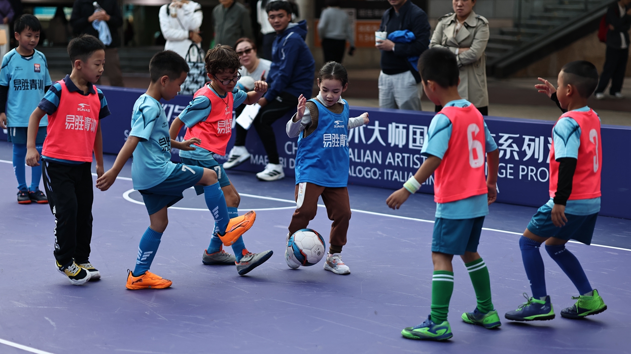 The Italian-style football zone in the sunken plaza also drew steady crowds. Italian coaches taught passing, shooting, and ball-control techniques, offering demonstrations and hands-on drills. “We rarely get a chance to experience professional Italian coaching,” said a local father surnamed Li, who attended with his child. “Today was wonderful, my kid had a great time.”
