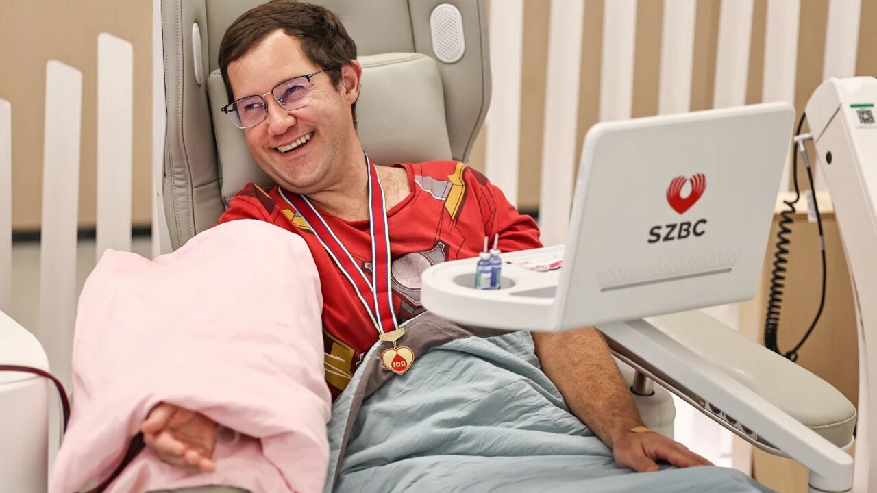 On Sunday, that discovery culminated in a remarkable act of dedication: his 100th blood donation in Shenzhen.