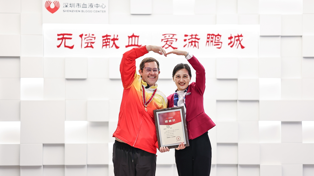 Hera, who moved to China in 2007 and now calls Shenzhen home, began donating blood in the city in 2013. What started as a routine soon turned into a mission. With his rare AB Rh-negative blood type, he occasionally receives urgent calls from the blood center — often due to emergencies like car accidents or mothers giving birth.