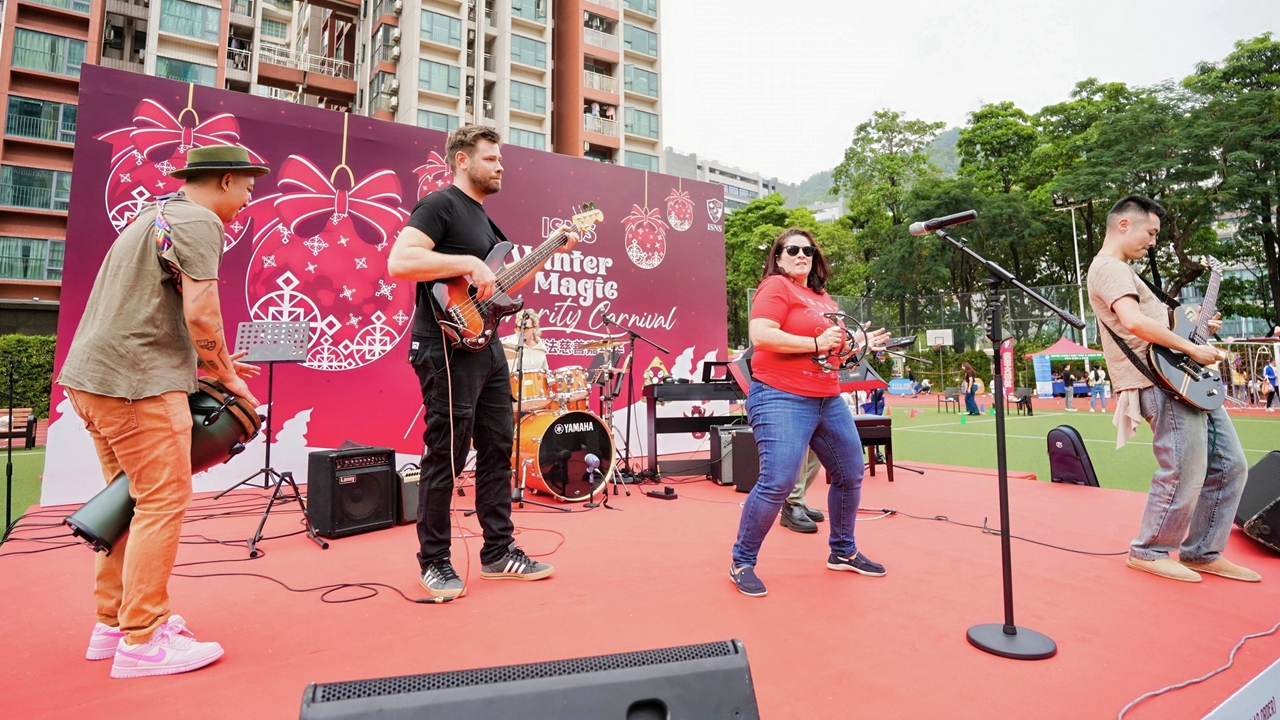 Dr. Addie Loy (2nd R), head of ISNS, joins a band performance during ISNS' Winter Magic Charity Carnival 2025 on Sunday. Photos courtesy of ISNS