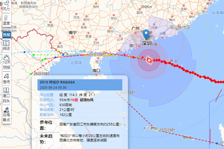 Shenzhen will suspend operations at workplaces, business venues, markets in phases starting from 2 p.m. today as Super Typhoon Ragasa is expected to bring strong winds, heavy rain between Tuesday night and Wednesday.
