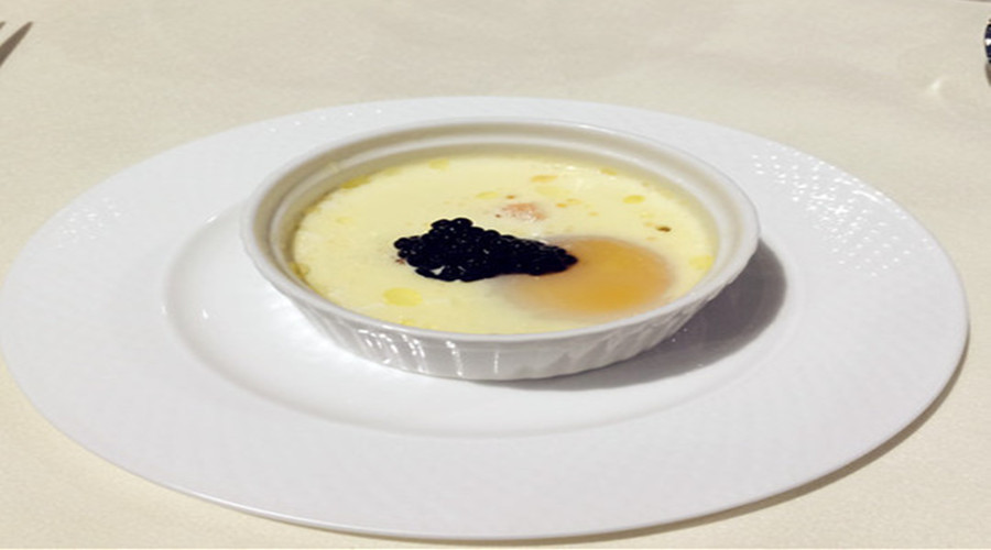 The creamy egg cocotte with smoked salmon and caviar.
