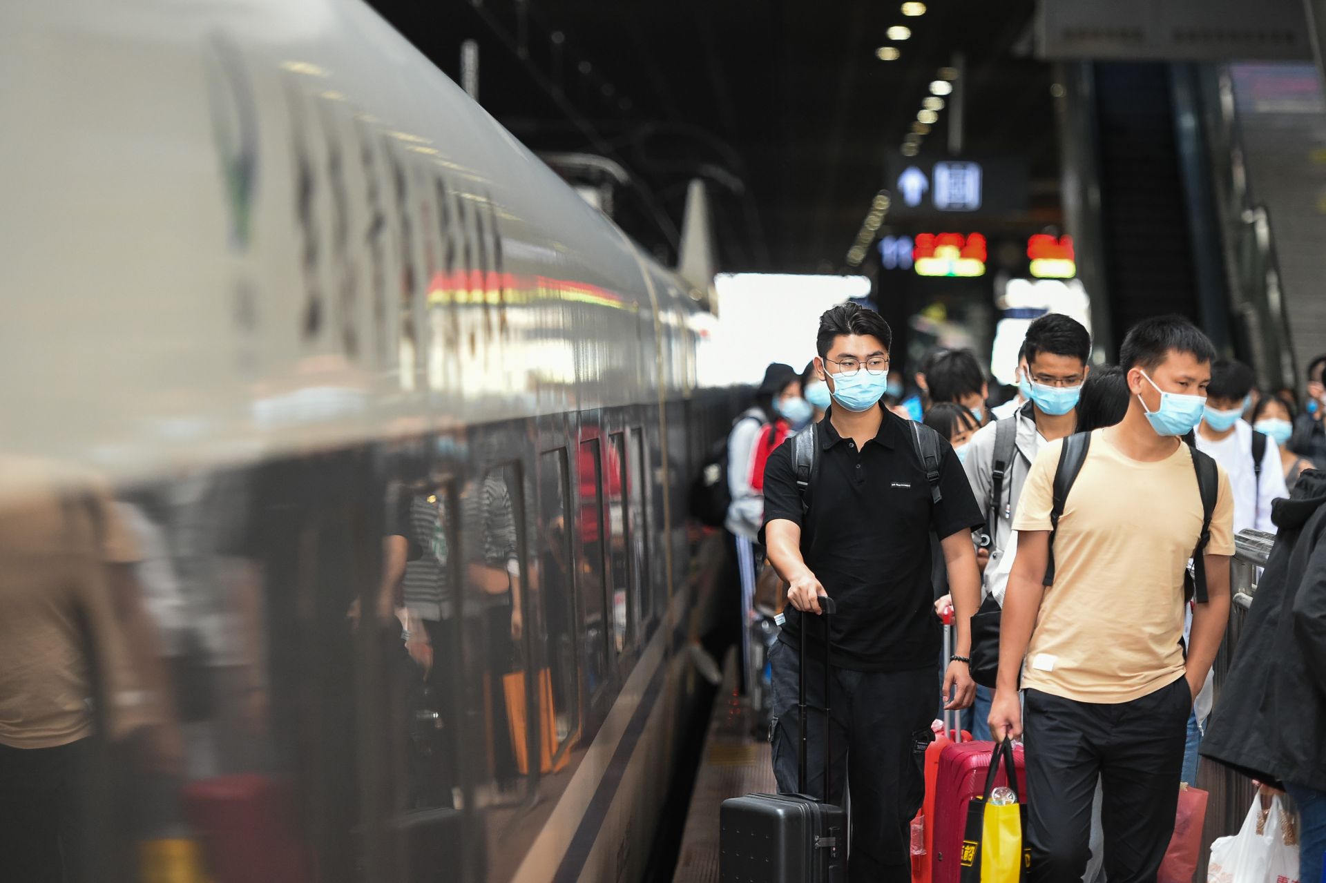 Passengers arrive at Shenzhen North Railway Station in Longhua District yesterday. Liu Yujie