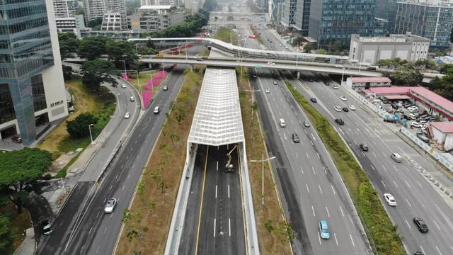 The 4.9-kilometer Phase I renovation project starts from Linhai Boulevard in Qianhai and connects to Binhai Boulevard by passing Qianhai and Yueliangwan Boulevard and running along Guimiao Road underground. The tunnel section that was put into use extends 3.29 kilometers.