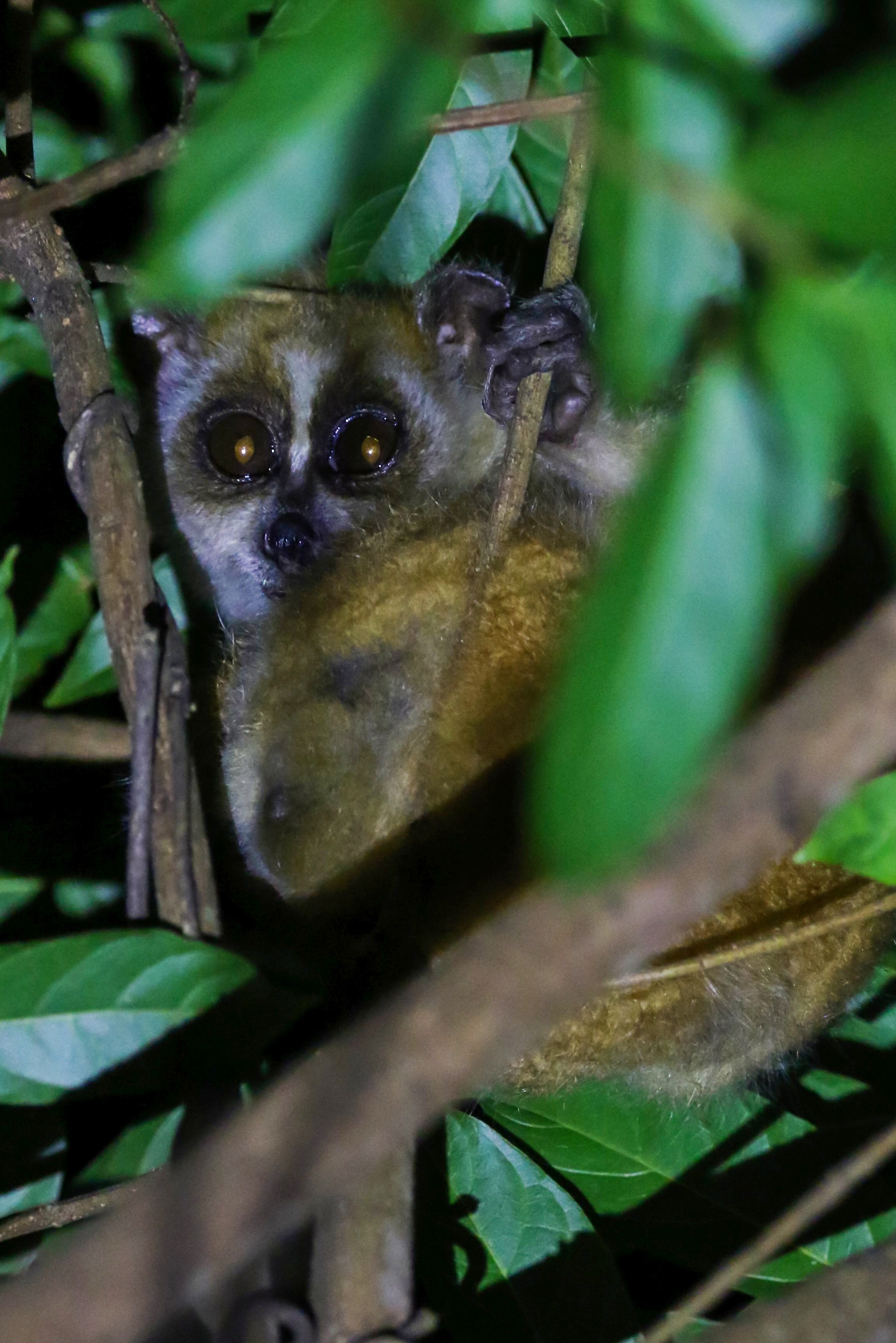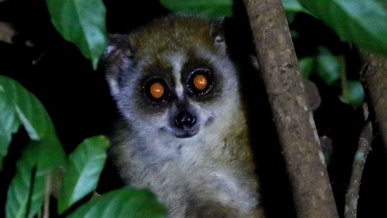 小懒猴属夜行动物,又大又圆的双眼夜视能力极强,能够帮助它们在树丛间来去自如。它们有什么吃什么,是食性很杂的机会主义者,即便是植物的果实甚至汁液,也能让它们饱餐一顿。