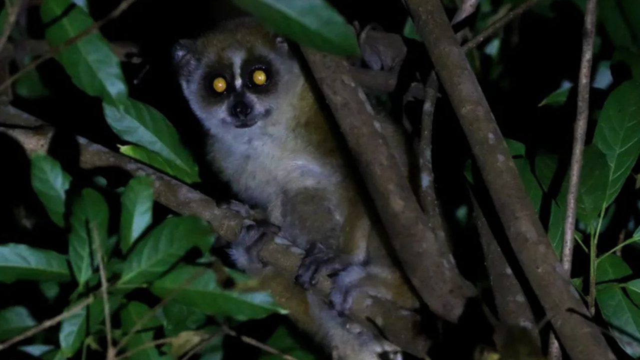 A pygmy slow loris is seen in a mountain of Shenzhen in this Nov. 2, 2021 photo.