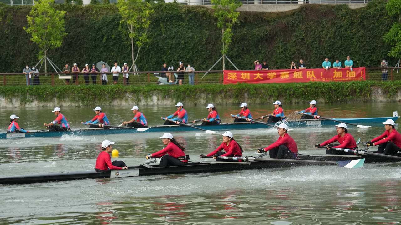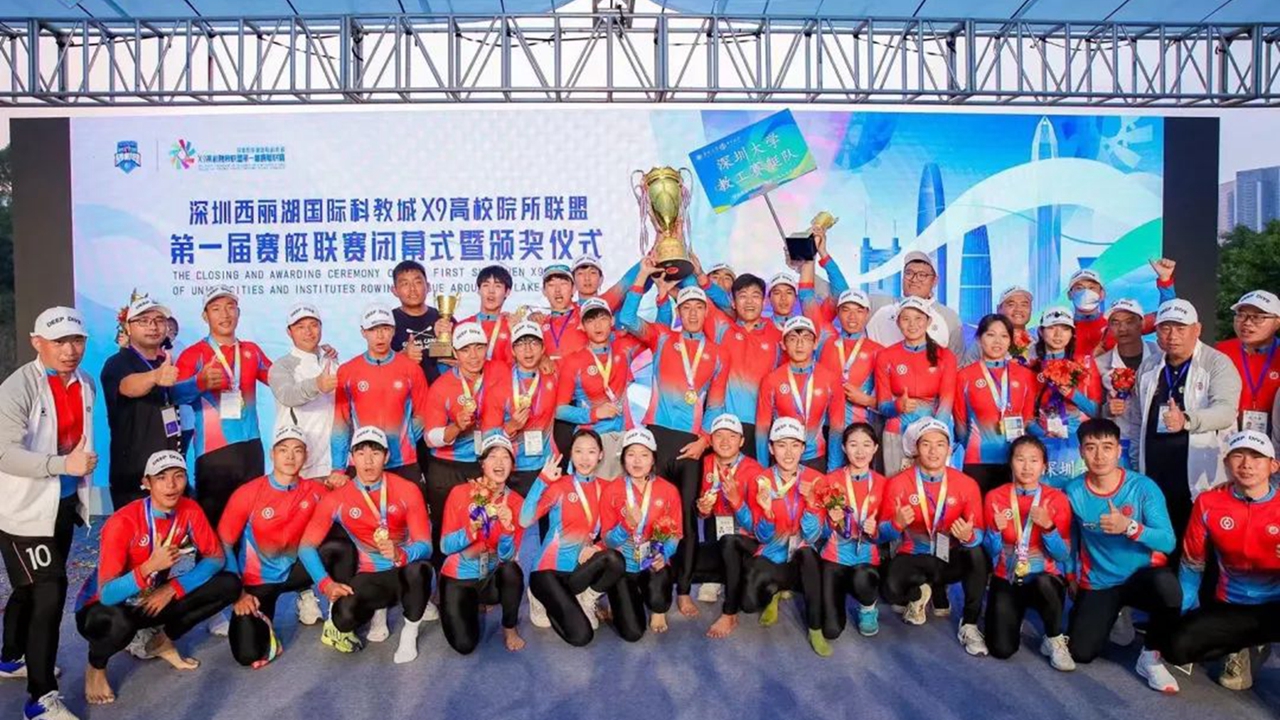 Shenzhen University’s (SZU) rowing team was crowned the champion at the first Shenzhen X9 Alliance of Universities and Institutes Rowing League Around X-Lake Sciensity yesterday.
