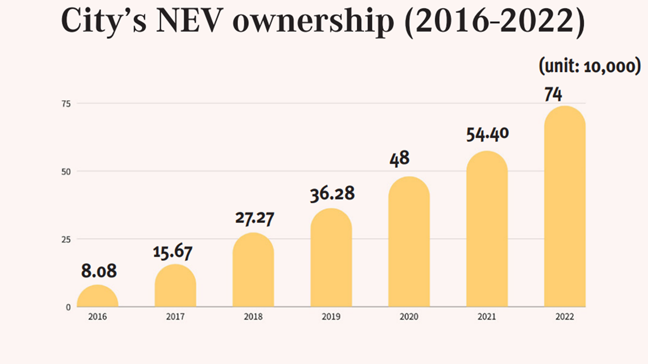 Shenzhen has seen an explosive increase in NEV ownership over the past three years. NEVs on Shenzhen’s roads jumped to 740,000 units at the end of 2022 and the number is expected to increase to 1.3 million by 2025, according to the local industry and information technology bureau.