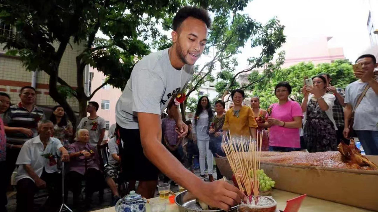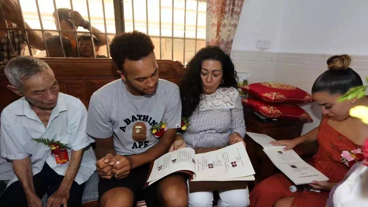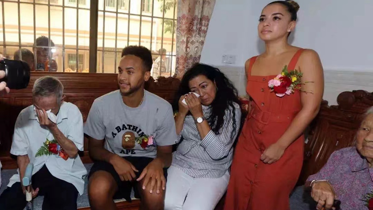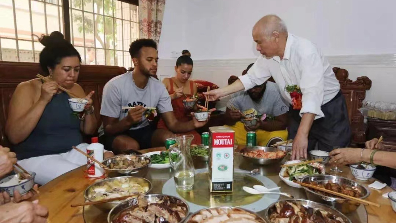 Anderson is treated to a banquet during his visit with his family members to Longgang District to seek the Chinese family history of his maternal grandmother.