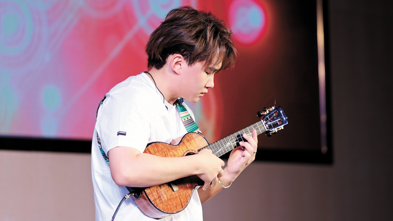 Guo, a first-prizewinner at the 8th Hong Kong International Musical Festival, also gave a rendition of “While My Guitar Gently Weeps” on the ukulele, his favorite piece that got him in love with the instrument. “I play the piano too, but I like the ukulele best,” he explained. “Ukulele has a pure idyllic sound and its charms are often underrated. The instrument can be expressive and versatile in the hands of a skillful player.”