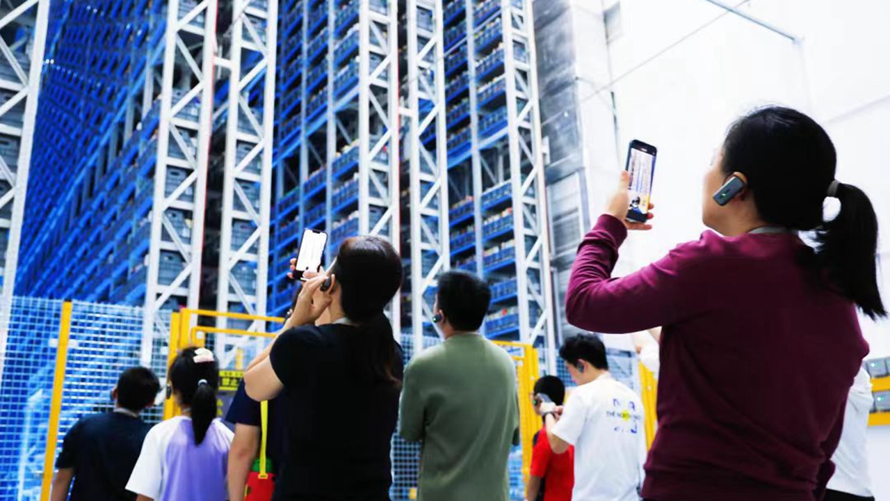 Visitors snap shots of Shenzhen Library’s massive smart sorting and search system. File photo