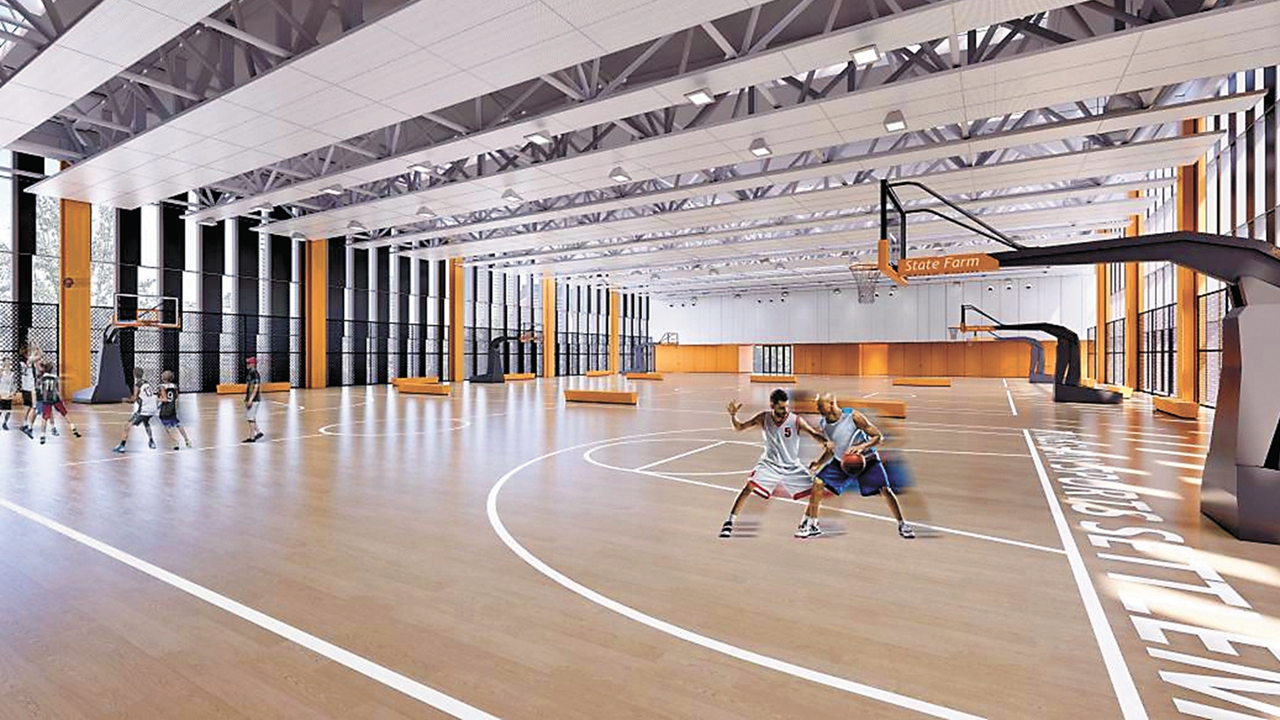 The basketball court combines the colors of wood and orange, representing excitement, passion and enthusiasm, creating an exhilarating atmosphere within the space.