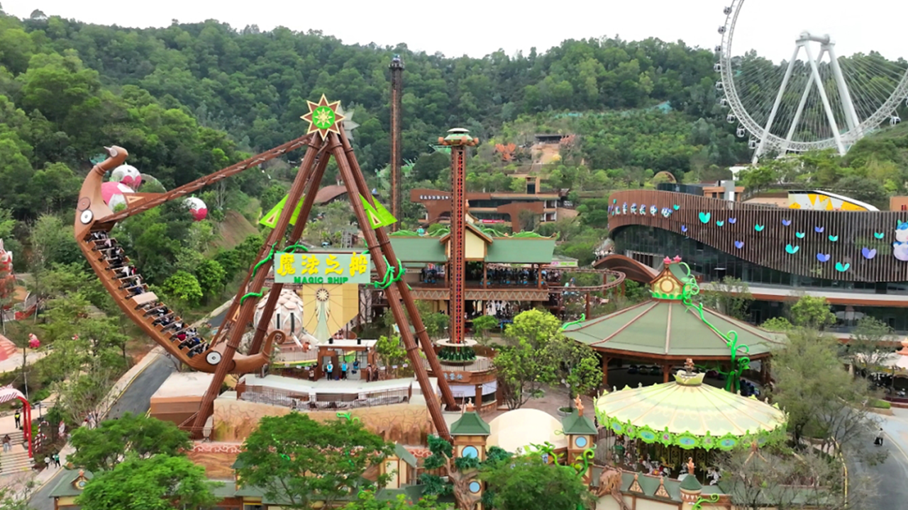 The park features an 88-meter-diameter Ferris wheel and a 108-seat pirate ship.