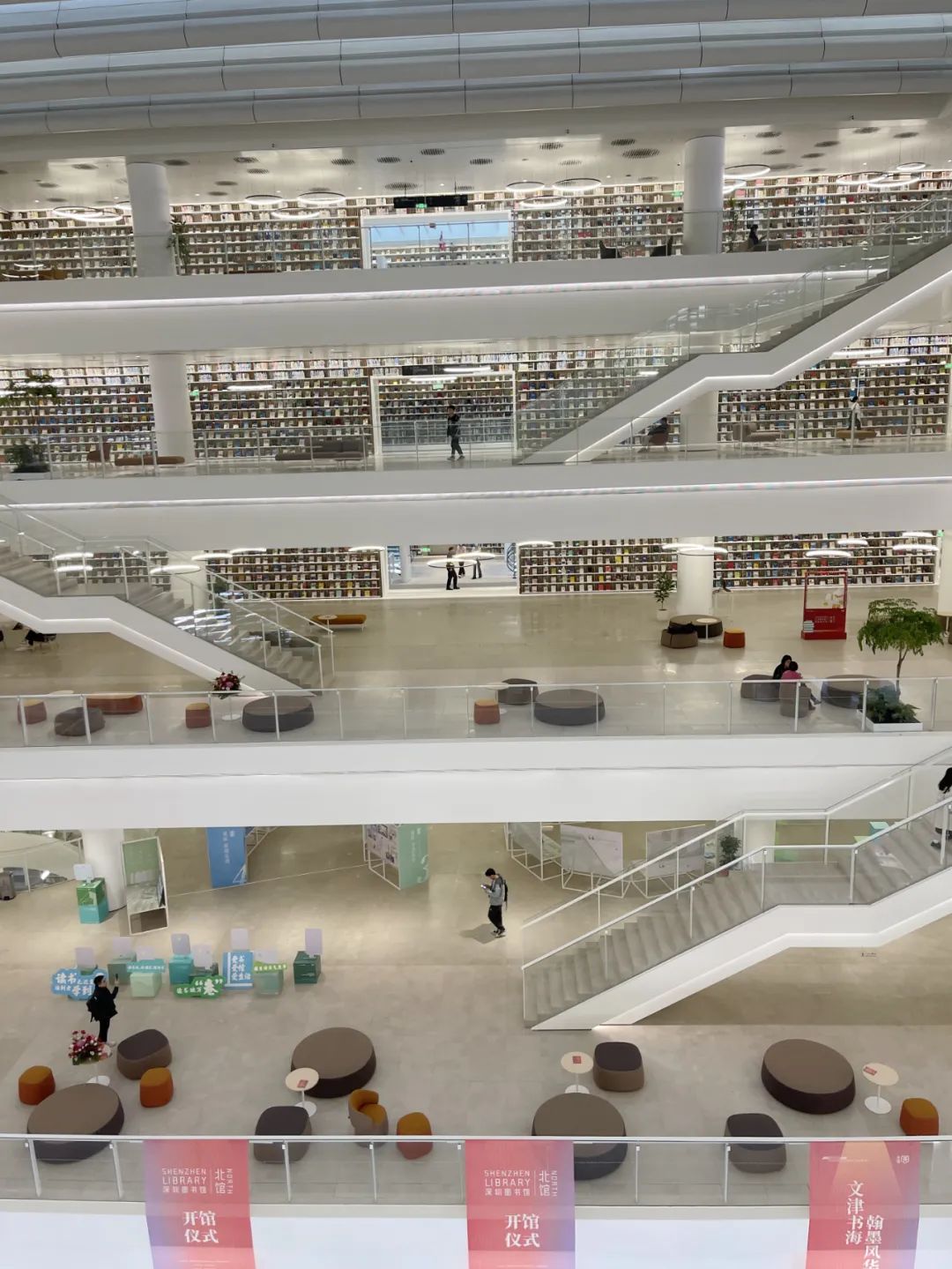 Located on the city’s central axis and in the Shenzhen North Railway Station central business district, the new library stands across from the Shenzhen Art Museum’s new venue, which began full operation in early November 2023.