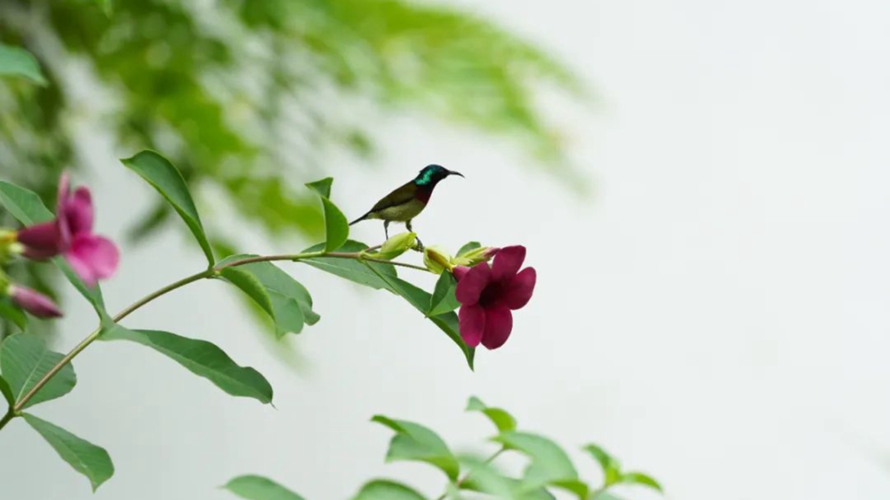 A male fork-tailed sunbird forages on a flower at Baguang Silver Leaf Wetland in Dapeng New Area on Dec. 4. Wang Haolan