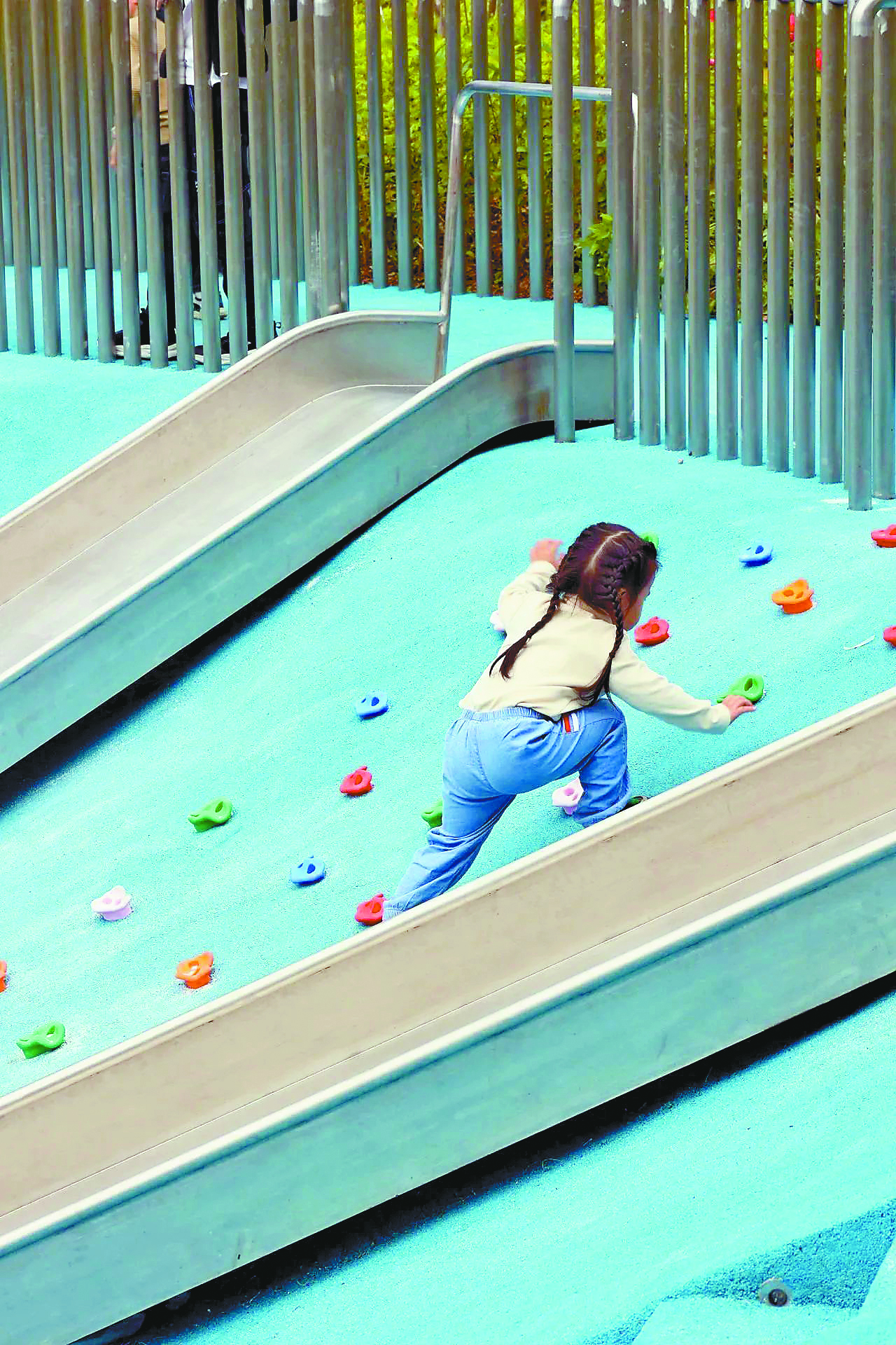 A girl enjoys rock climbing at Yuehai Sports Leisure Park (Phase 2). Photo from WeChat account "newluoohu"
