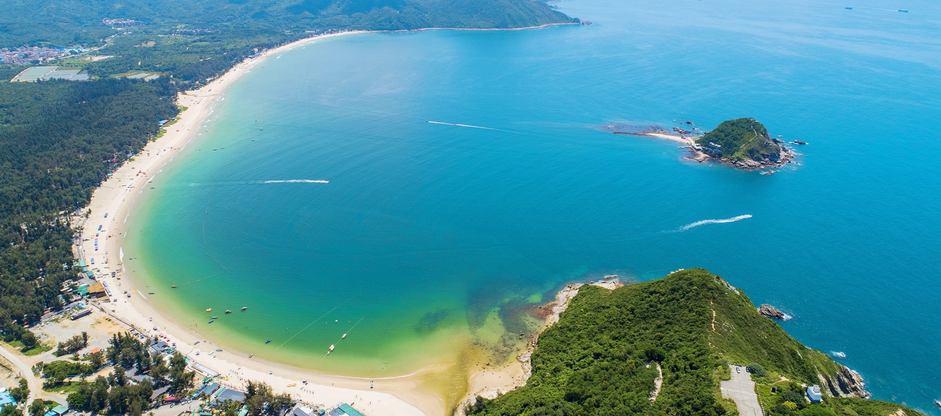 Dameisha, which is free to the public, commands a stunning mountain-and-sea view. Mountains flank its three sides, while giant winged people sculptures mark the beach, together with a Wish Tower. As one of the first tourist spots to use metaverse in China, Dameisha introduces high technologies such as holographic projections, keeping its observation deck with aerial views. Young people are also drawn to Dameisha for exciting watersports and bungee jumping.
