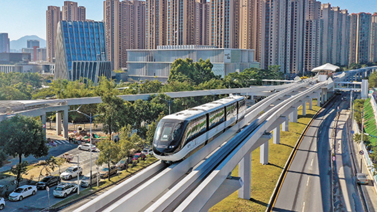 A SkyShuttle train runs in Pingshan. Photo by Yang Shaokun