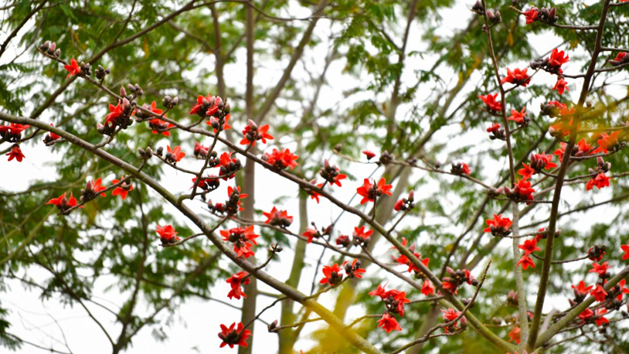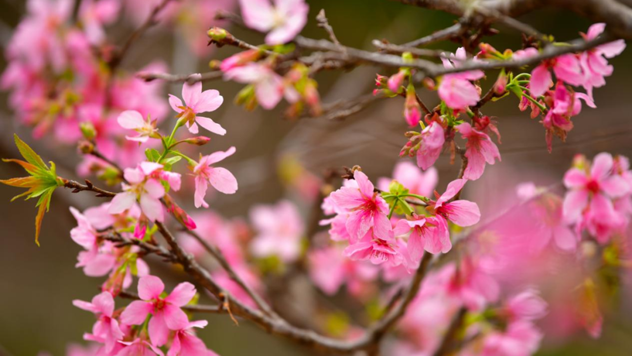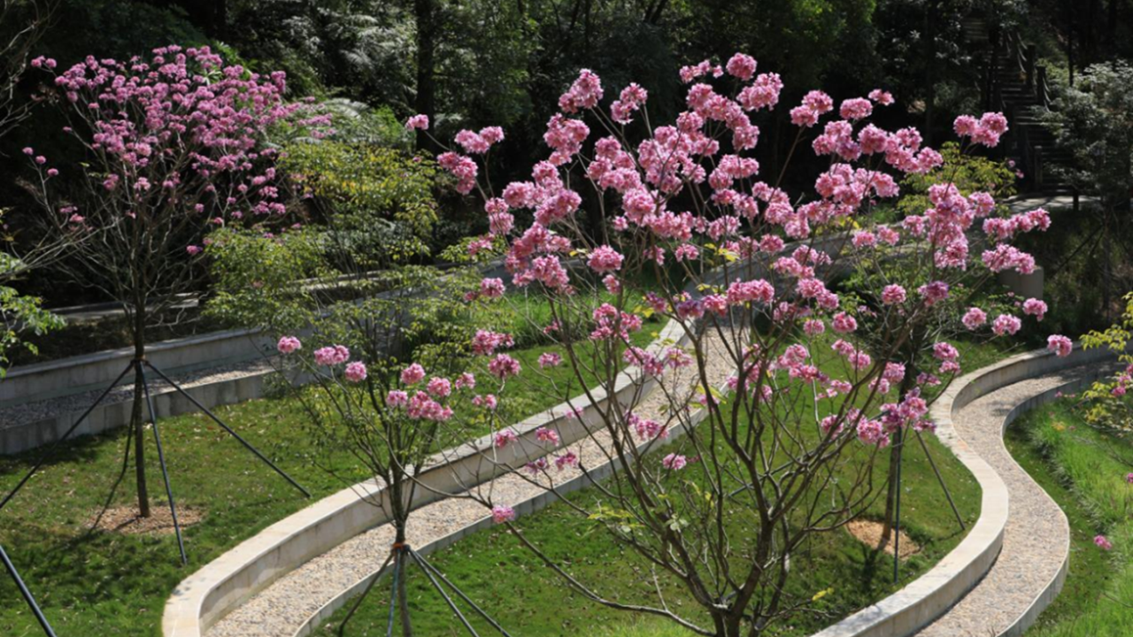 Cherry blossoms, Chinese roses, kapok, and bauhinia flowers in Julong Mountain Ecological Park.