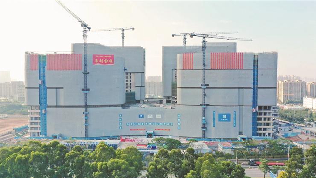 The included photo shows the new building of the Guangming District People's Hospital hitting a construction milestone. (Bao'an Daily)