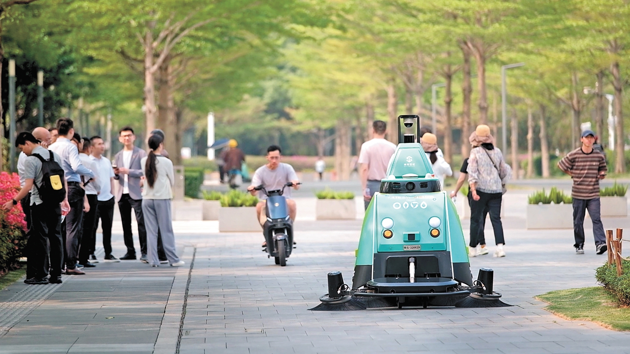 Within the 3 square kilometers encompassing Lianhua Hill Park and the Civic Center in Futian CBD, a variety of robot models of various sizes have been deployed for cleaning on sidewalks and in parks and squares.
