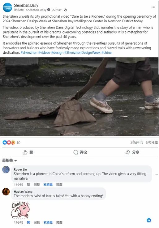 On YouTube, comments lauded the video's inspirational message. “Brilliant Shenzhen,” wrote @user-op9fs6wq3k. User @haolanwang129 echoed the sentiment, stating, “Enjoy watching the video in full! So inspirational.”