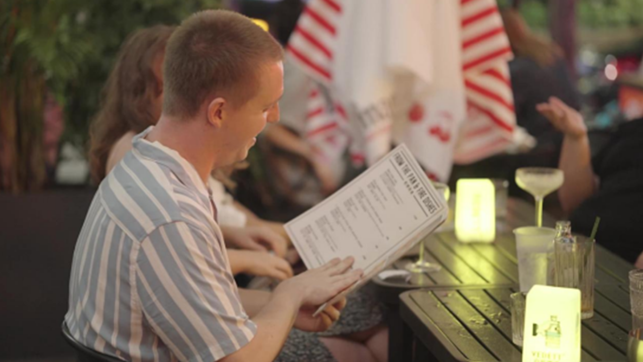 An expat reads the bilingual menu of the Brew Bar & Kitchen in Link Central Walk in Futian.
