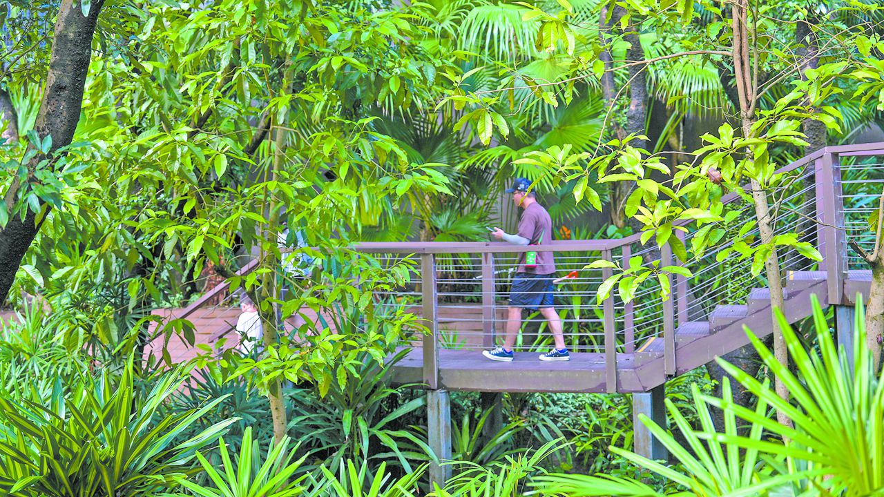 The park’s original topography has been preserved, with elevated walkways meticulously constructed to safeguard terrain integrity. Wandering along the winding walkways in the lush woods amid the hill offers a serene natural retreat, providing moments of respite from urban clamor.