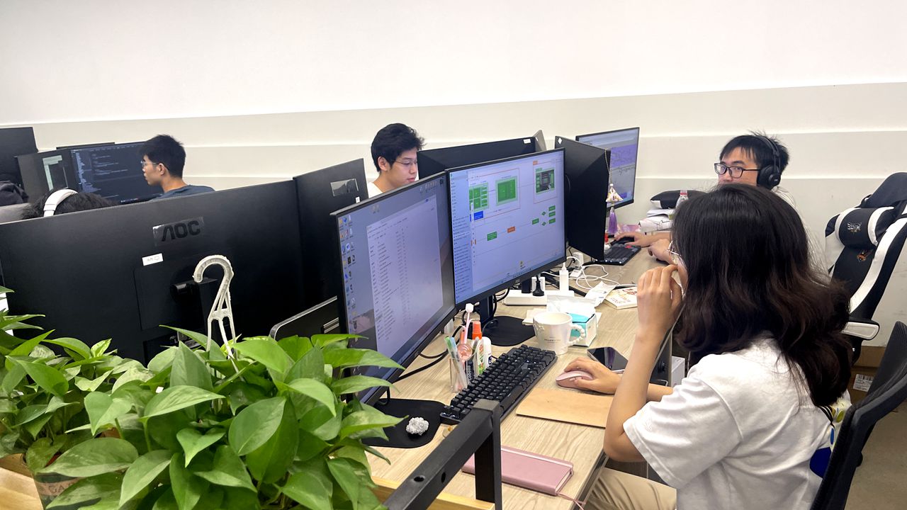 Employees of Sengine work at the company's office at Taihua Wutong Island in Bao'an District. Photos by Liu Minxia