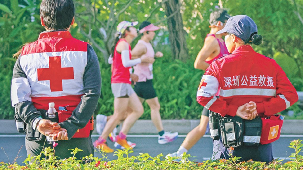 Volunteers serve during the Shenzhen Marathon 2024 on Dec. 1. Thursday marked the 39th International Volunteer Day. Photos by Liu Xudong