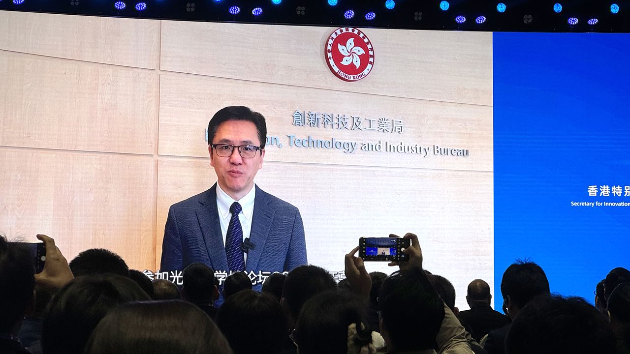 Sun Dong, secretary of the Innovation, Technology, and Industry Bureau of the HKSAR delivers a speech via video at the forum.