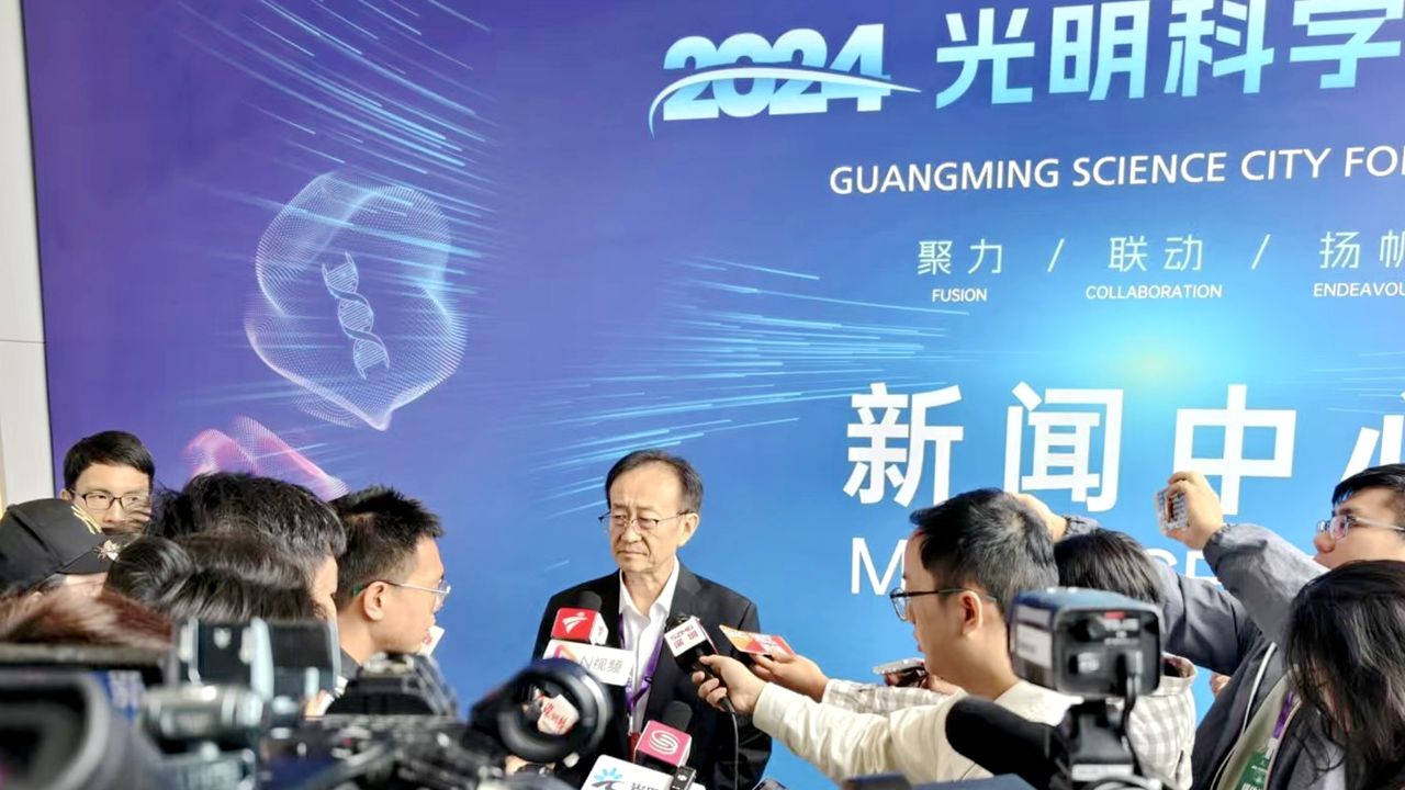 Fan Jianping, president of Shenzhen University of Advanced Technology, speaks during a media session.