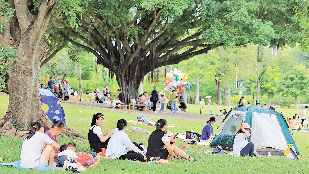 Visitors relax on a weekend afternoon at Lianhua Hill Park. Shenzhen Evening News