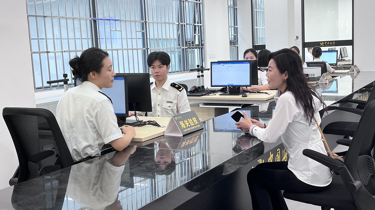 Customs officers process departure tax refunds at a service counter at the Luohu Checkpoint in Shenzhen on Tuesday. Photos by Zhang Yu