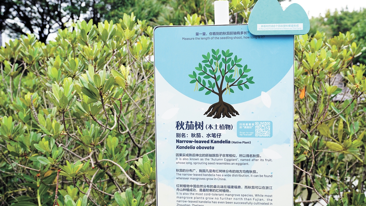 Narrow-leaved kandelia are seen at the renovated Tidal Wetland.