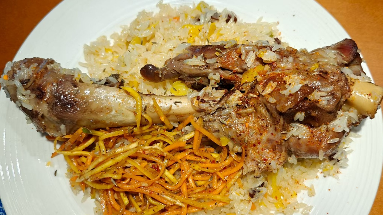 Then came Lamb Leg Pilaf, the main event and star of the show. An enormous, majestic lamb shank, slow-cooked to perfection, was laid to rest on the same bed of fragrant rice. This was a dish that demanded your full attention. The meat was so tender it practically sighed and fell away from the bone at the mere suggestion of a fork. It was rich, deeply flavorful, and the kind of soul-satisfying comfort food that makes you forget all your troubles.