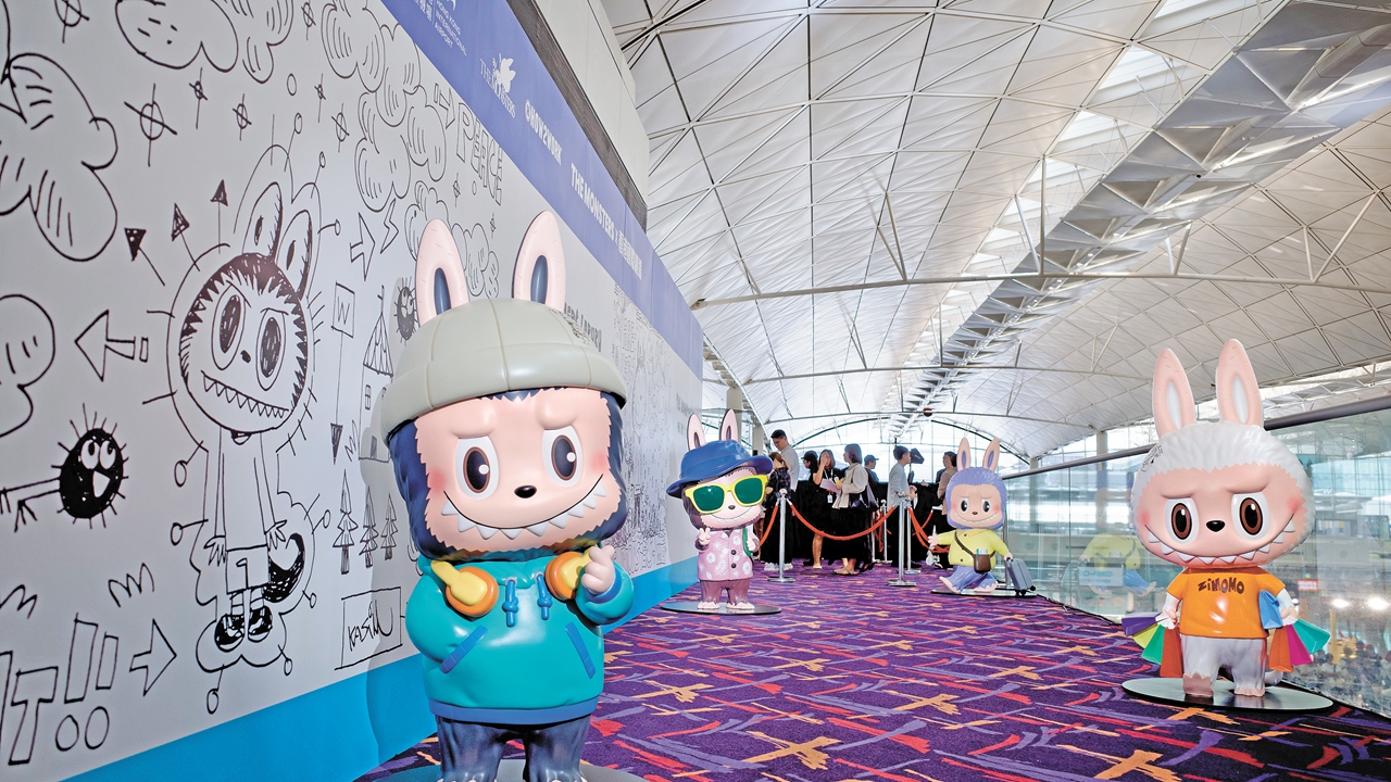 Labubu installations are unveiled in the Departure Hall of the Hong Kong International Airport, which yesterday launched “THE MONSTERS × Hong Kong International Airport” in collaboration with creator of the series Kasing Lung. China News Service