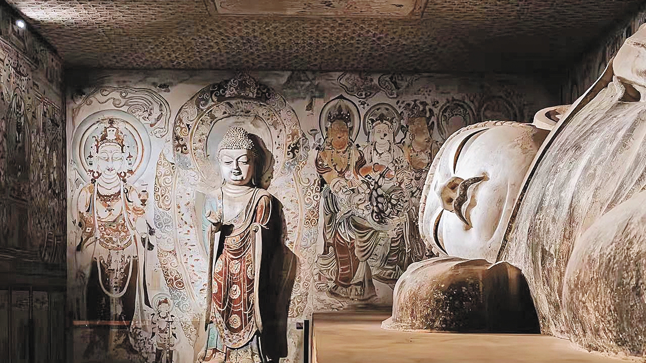 The exhibition features a total of 205 precious pieces and sets of relics, including six digitally recreated special caves, four replicated painted sculptures, over 60 reproductions of wall paintings, and more than 80 sets of rare original artifacts.